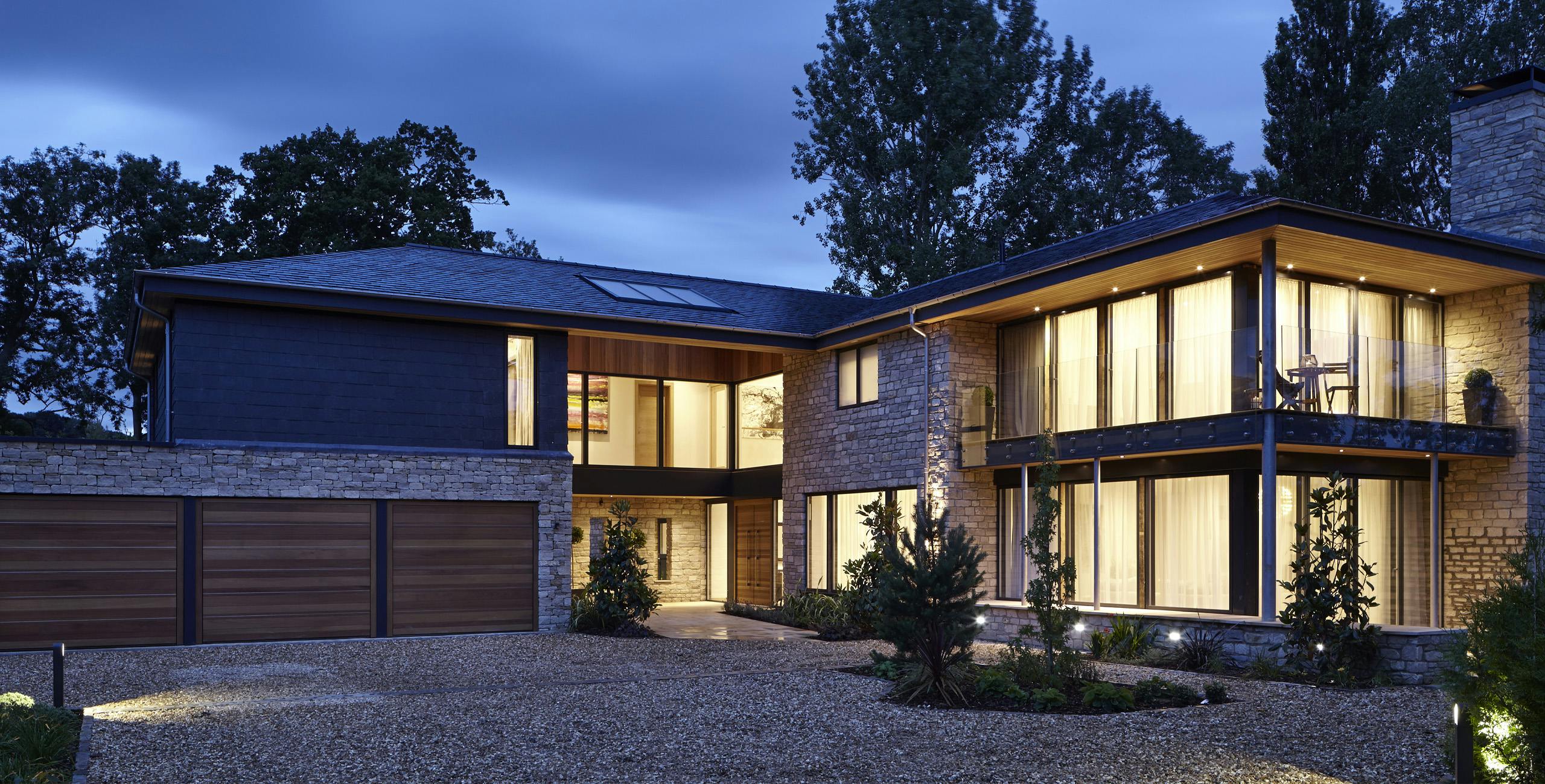 These two individual one-off houses by Marcus Hawtin Homes in the South East are a great example of high end developments with both garage and front doors in Iroko to match the cladding.