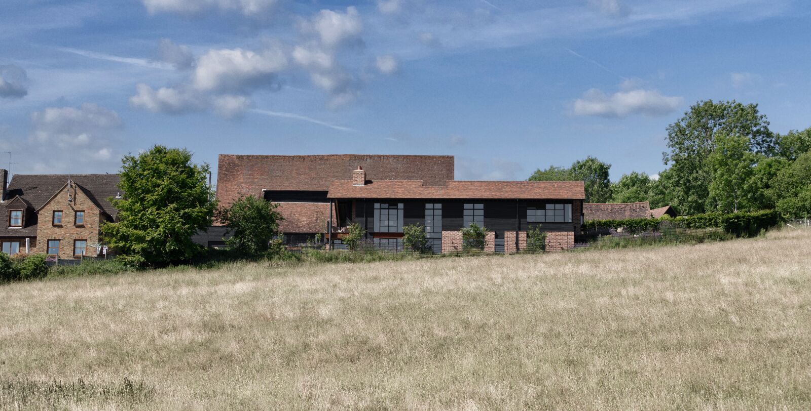 AV: Our design centres on a steel and timber-framed home featuring traditional Chiltern red brick alongside black timber cladding, which ensures the building is in keeping with the local vernacular. Crittall windows and Corten steel elements create a contemporary industrial aesthetic.