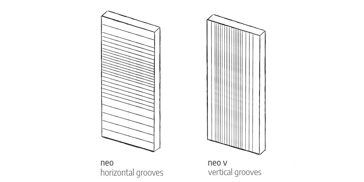The beauty in this design is in its simplicity. An array of horizontal grooves intensify towards the middle of the door dramatising the overall effect. Also available in a vertical option, the "Neo" adds that something special to your elevation and interior.
